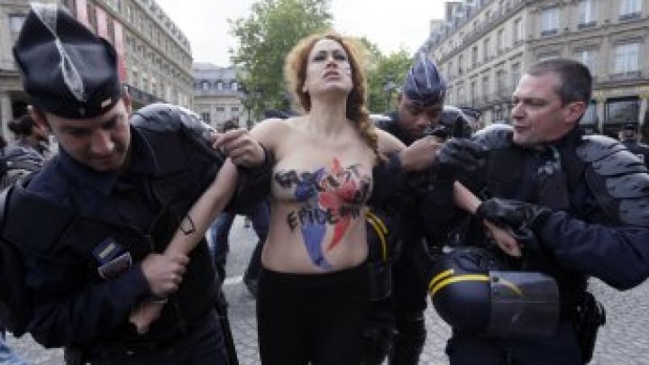 قامت ناشطتان من عاريات الصدر، بينهما الناشطة التونسية أمينة السبوعي، بالكشف عن صدريهما أمام السفارة السعودية في باريس للتنديد بالحكم الصادر بحق المدون والناشط الحقوقي السعودي رائف بدوي.