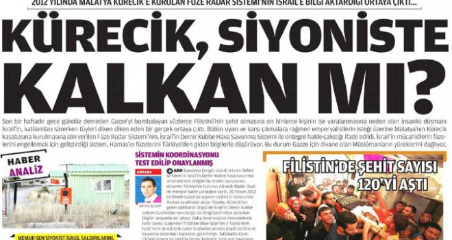 والذى تضمن شهادة مجلة “دفينس نيوز” الأمريكية والتي توضح دور قاعدة كوراجيك الرادارية الأمريكية فى مدينة ملاطية بوسط تركيا، موضحة أن قاعدة كوراجيك الرادارية تعمل بصورة متناسقة مع نظام القبة الحديدي بإسرائيل، وهو النظام الراداري الذى أقامته إسرائيل بعد كم الصواريخ التى أصابها أثناء حرب تموز 2006 على يد حزب الله اللبناني.