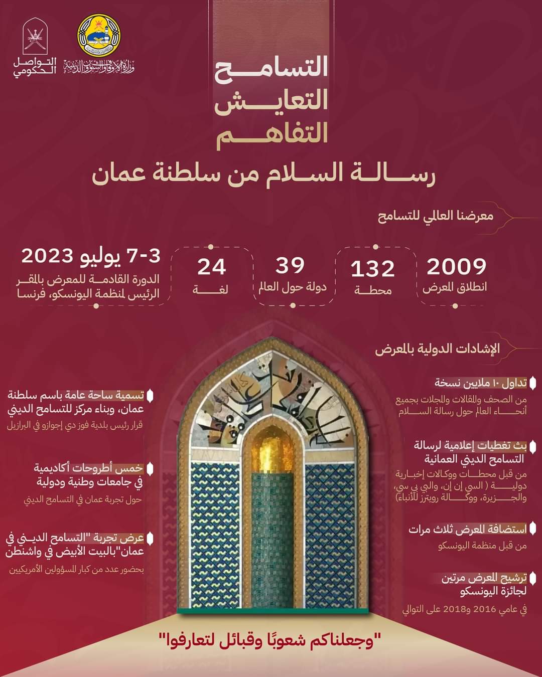 وأكد الدكتور محمد بن سعيد المعمري وزير الأوقاف والشؤون الدينية في كلمة له خلال افتتاح المعرض على جهود سلطنة عُمان في تعزيز الروابط الإنسانية العميقة تمهيدًا للطريق نحو السلام المستدام، ويهدف المعرض، لعرض تجربة سلطنة عُمان في تعزيز ثقافة التسامح والتعايش السلمي والاحترام المتبادل لمكافحة التطرف والإرهاب.
