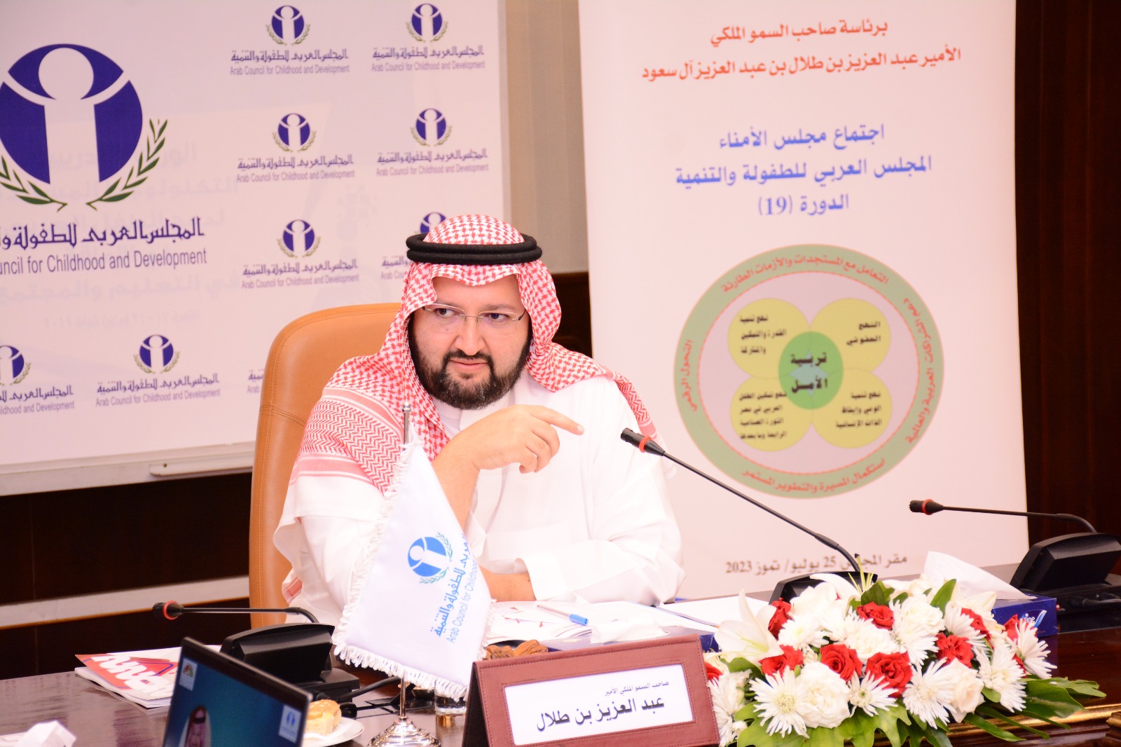 تحت رعاية وبحضور صاحب السمو الملكي الأمير عبد العزيز بن طلال بن عبد العزيز آل سعود رئيس المجلس العربي للطفولة والتنمية، عقد صباح اليوم الثلاثاء 25 يوليو/ تموز 2023 اجتماع مجلس أمناء المجلس في دورته (19)، وذلك بمقر المجلس بمدينة نصر بالقاهرة.