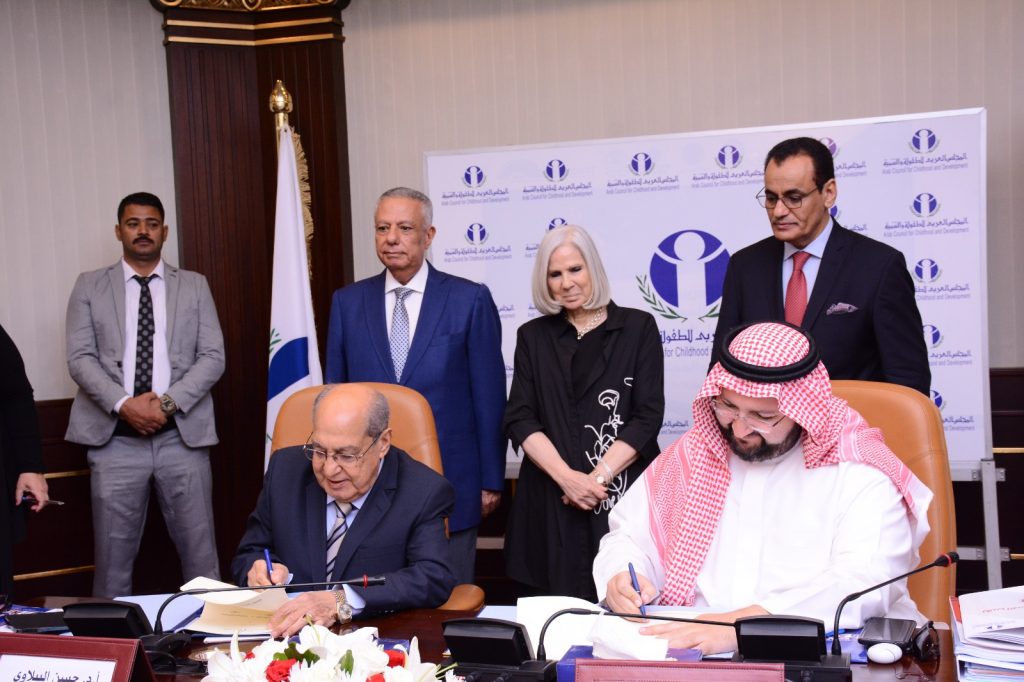 على جانب آخر شهد الاجتماع توقيع اتفاقية “دعم البناء المؤسسي للمجلس العربي للطفولة والتنمية” من قبل برنامج الخليج العربي للتنمية – اجفند، بغرض تمكين المجلس من الاستمرار في تحقيق أهدافه التي تخدم الطفل العربي. حيث وقع الاتفاقية كل من صاحب السمو الملكي الأمير عبد العزيز بن طلال بن عبد العزيز آل سعود رئيس برنامج الخليج العربي للتنمية – أجفند والدكتور حسن البيلاوي الأمين العام للمجلس العربي للطفولة والتنمية.