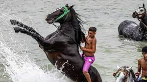 فرسان الفنتازيا المغربية في مياه المحيط الأطلسي