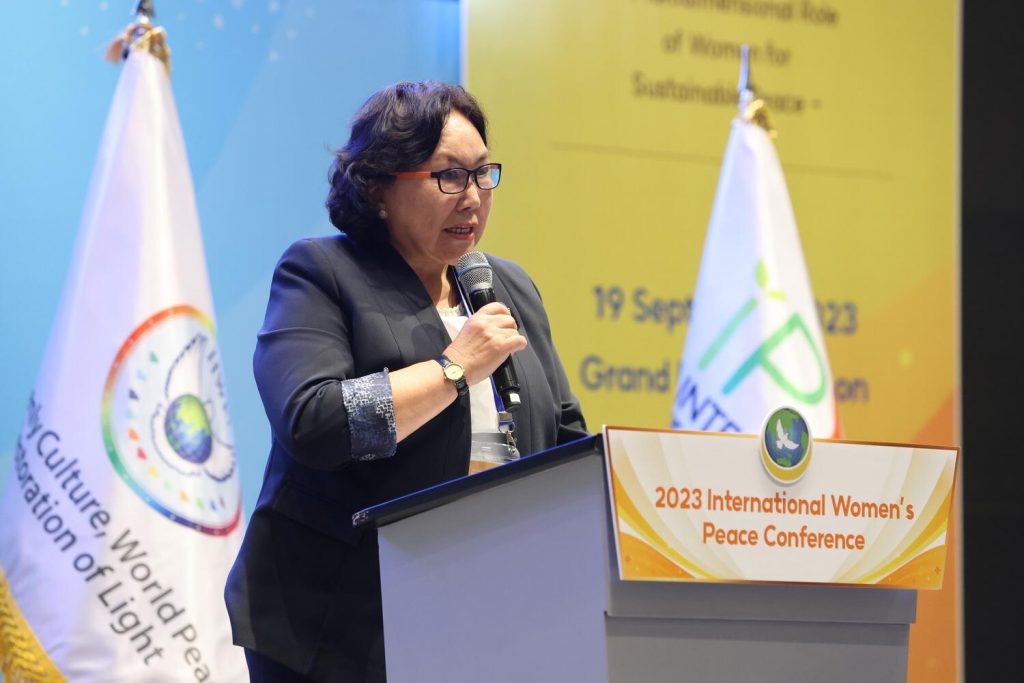 Former Mongolian National Assembly member and current President of Association of Mothers with the Order of Famous Mothers and IWPG Advisory, Ms. Budee Munkhtuya, gave a speech on “The Role of Women in the Institutionalisation of Sustainable Peace.” She used the example of the Russo-Ukraine war to prove the ineffectiveness of existing international laws and peace treaties and emphasise the need for the role of women in institutionalising the DPCW. Ms. Budee Munkhtuya said, “Collaboration among various civil institutions and organisations is also essential for building peace. During this process, women’s leadership qualities such as communication, cooperation, and reconciliation are crucial. Women’s participation in the negotiation process plays a crucial role as they can offer unique perspectives and wisdom in conflict resolution. By increasing women’s participation in political and social decisions, we can contribute to the creation of more peaceful and inclusive international laws.”