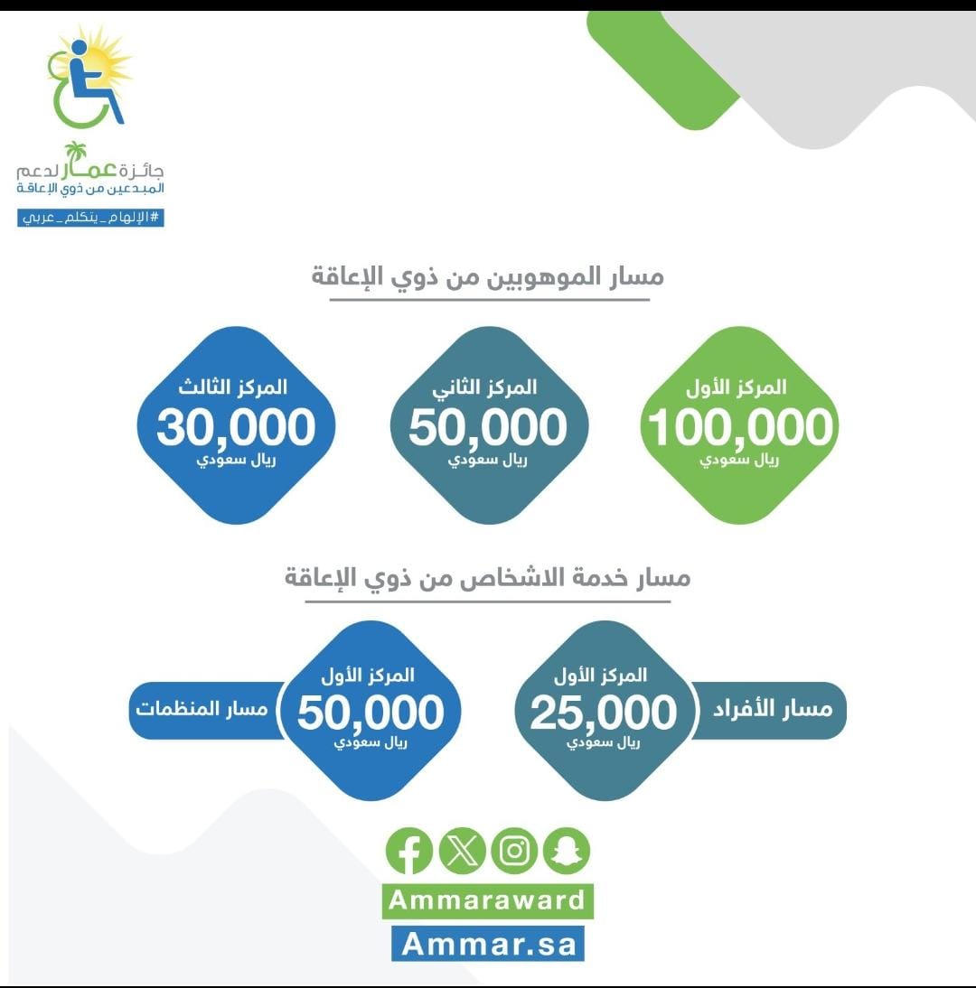 بعد ستة مواسم من النجاحات التي حققتها في دول مجلس التعاون الخليجي اختتمت يوم أمس الأربعاء جولات جائزة عمار لدعم المبدعين من ذوي الإعاقة والتي تنظمها جمعية الإرادة للموهوبين من ذوي الإعاقة في موسمها السابع محلياً و الأول عربيا تحت شعار “الإلهام يتكلم عربي” تحت مظلة جامعة الدول العربية و بدعم من وزراء التنمية الاجتماعية في كافة دول الوطن العربي، وقد شملت الجولات الاستكشافية للجائزة 5 دول في الوطن العربي استعرض خلالها 300 متسابقا مواهبهم ومشاركاتهم أمام لجنة التحكيم، بعد أن تم فرزهم من أصل 70 ألف مشارك على موقع الجائزة. و أعرب أمين عام جائزة عمار الدكتور عمار بوقس عن فخره واعتزازه بنجاح الموسم السابع من جائزة عمار الذي يقام لأول مرة على مستوى دول الوطن العربي بعد ستة مواسم من النجاحات التي حققتها في دول مجلس التعاون الخليجي. مشيراً إلى أن هذا مؤشر نجاح متصاعد لقوة المسابقة التي حظيت بدعم كبير على جميع الأصعدة، إيماناً بمواهب ذوي الإعاقة وقدراتهم. كما أكد أن لجنة التحكيم واجهت تحدياً في اختيار الفائزين، نظراً إلى حجم التنافس والمستوى العالي بين المشاركين في الجائزة.