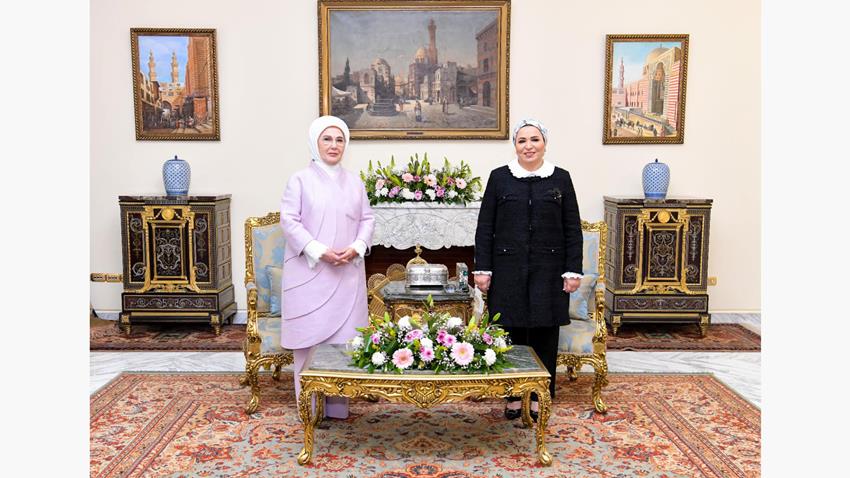 قرينة السيد الرئيس ترحب بقرينة الرئيس التركي في مصر