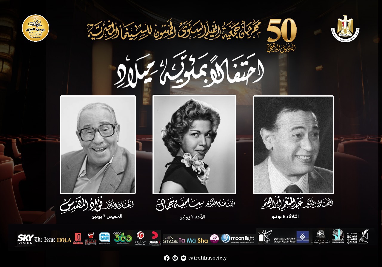 في تقليد يقام للمرة الأولي بمهرجان جمعية الفيلم السنوي للسينما المصرية والذي سيقام في الفترة من 1 إلى 12 يونيو القادم بدار الاوبرا المصرية، بمناسبة اليوبيل الذهبي قررت إدارة المهرجان تكريم عدد من روادها من خلال الاحتفال بمرور 100 عام على ميلادهم، وهم الفنانة سامية جمال والفنان عبد المنعم إبراهيم والمخرج والفنان فؤاد المهندس، وسيكون الاحتفال بالمئوية له شكل جديد ومختلف من خلال نقاشات وتوقيع عدد من الكتب التي تحدثت عن حياة هؤلاء النجوم.