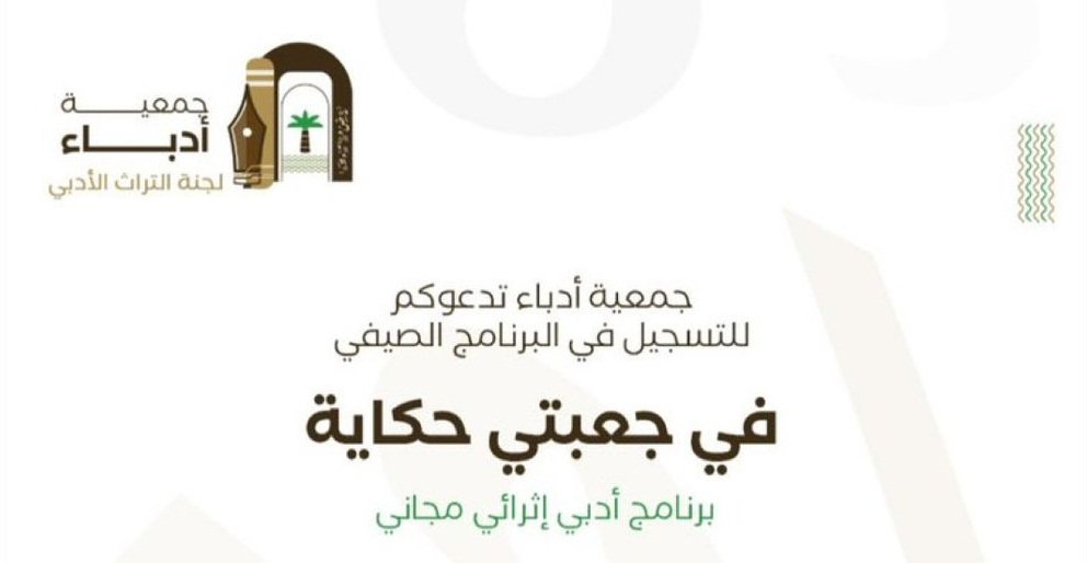أعلنت جمعية أدباء الأحساء عن برنامجها الصيفي ( في جعبتي حكاية ) وهو برنامج أدبي إثرائي مجاني ينطلق من يوم 2 حتى يوم 4 من شهر صفر 1446 من الساعة الخامسة حتى الثامنة مساء ينفذه د. ماهر المحمود ، و د. مريم الدوغان في مقر الجمعية .