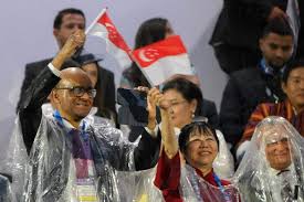 قاد فريق سنغافورة المكون من 29 رياضيًا ومسؤولًا بطل الألعاب الآسيوية شانتي بيريرا (ألعاب القوى) وريان لو (الإبحار). ارتدى الفريق ستراتهم الحمراء وسراويلهم البيج، واستمتعوا بالأجواء وهم يلوحون بأعلامهم ويقفزون بحماس على متن السفينة.