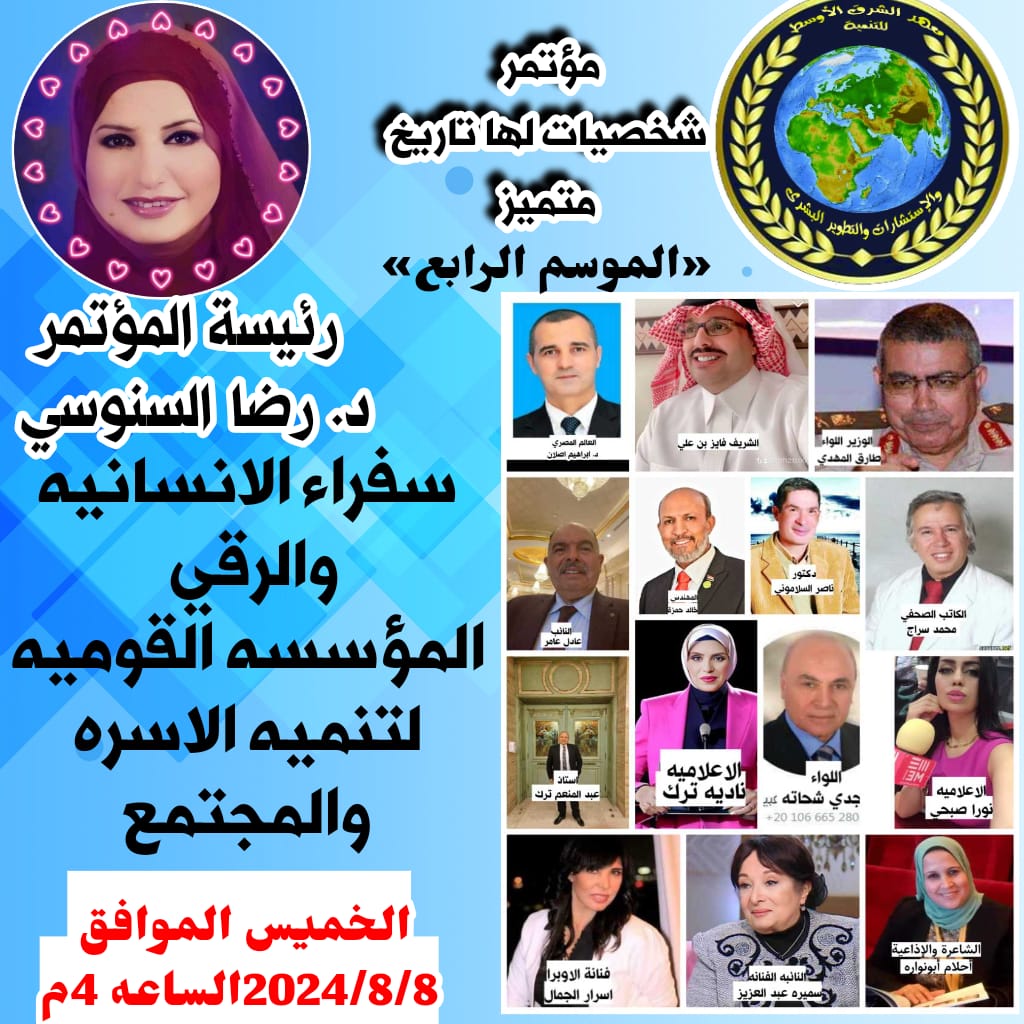 تستعد الان سفيره دكتوره رضا السنوسي لاقامه مؤتمر شخصيات لها تاريخ متميز للمره الرابعه