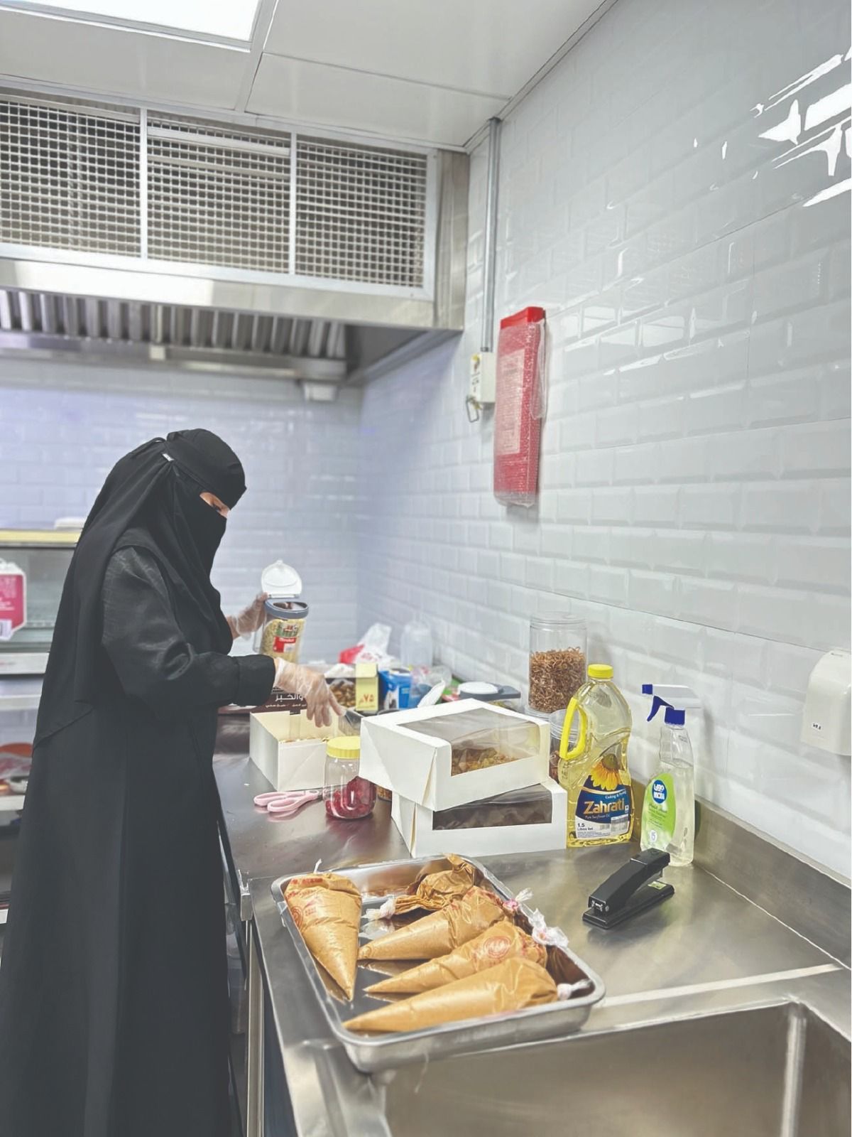 إضافة إلى استفادت 14 فتاة من حاضنة “مطبخ سحابة ” وهو عبارة عن مطبخ مركزي سحابي مستحدث من نظام يوائم احتياجات ومهارات الأسر لإنتاج المأكولات والمشروبات والحلويات بأيادي وطنية سعودية.