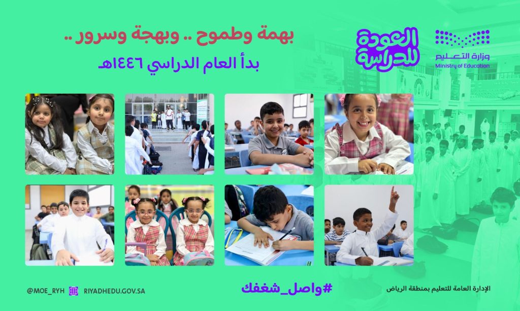 انتظم اليوم الأحد أكثر من 1.6 مليون طالب وطالبة على مقاعد الدراسة في مدارس الإدارة العامة للتعليم بمنطقة الرياض والمحافظات التابعة لها وسط اكتمال الاستعدادات لاستقبال الطلاب والطالبات لانطلاقة العام الدراسي 1446هـ
