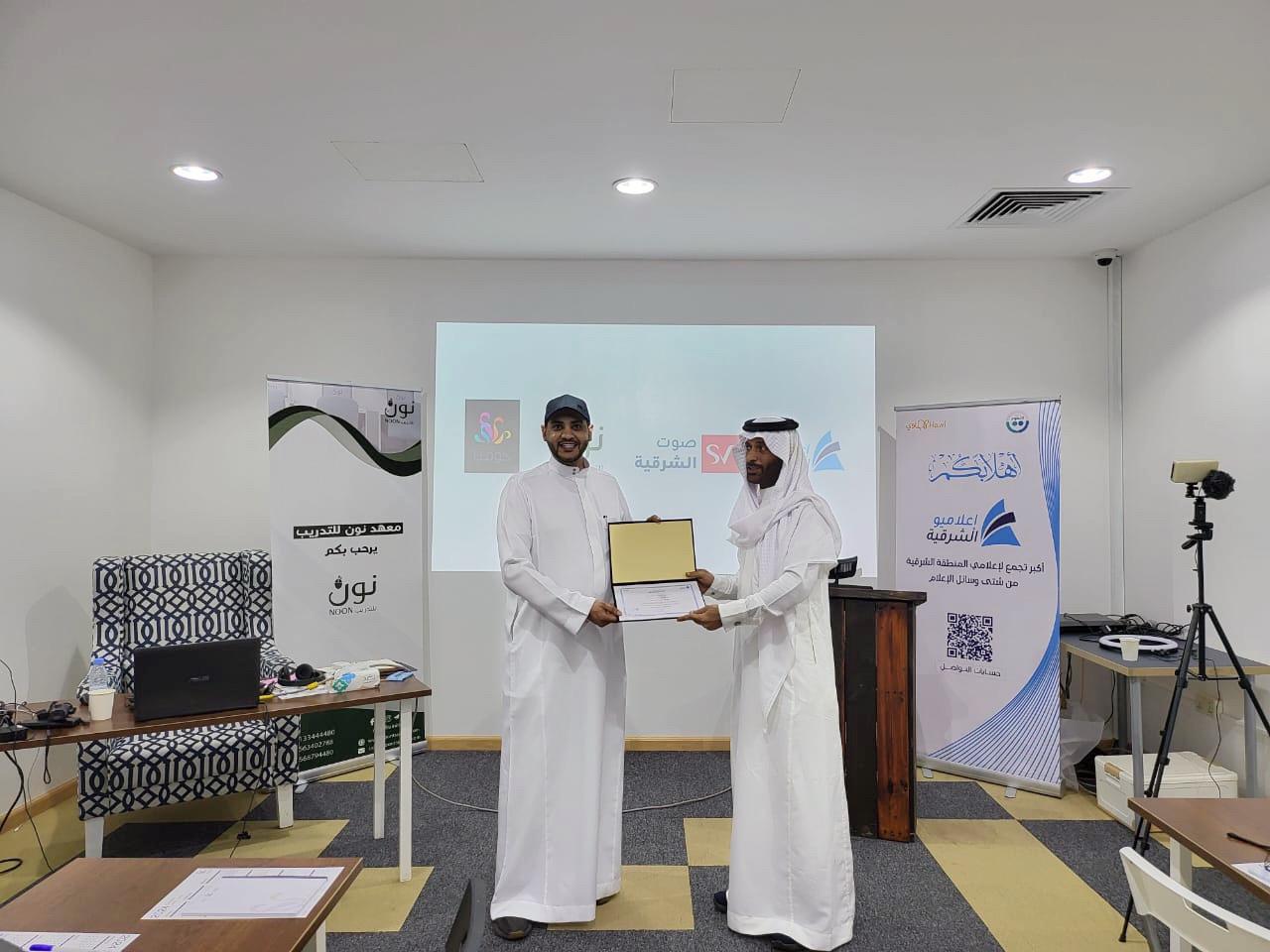يشار إلى أن حفل الختام حضره، الرئيس التنفيذي لمعهد نون الأستاذ نايف الصالح، ورئيس إعلاميو الشرقية الأستاذ فهد الحشام، حيث تم تكريم المدرب في ختام الدورة.