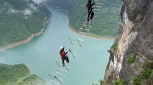 وتظهر اللقطات الرياضيين المشاركين وهم يصعدون إلى نقطة البداية، وكأنه “جسر يربط بين السماء والأرض”.