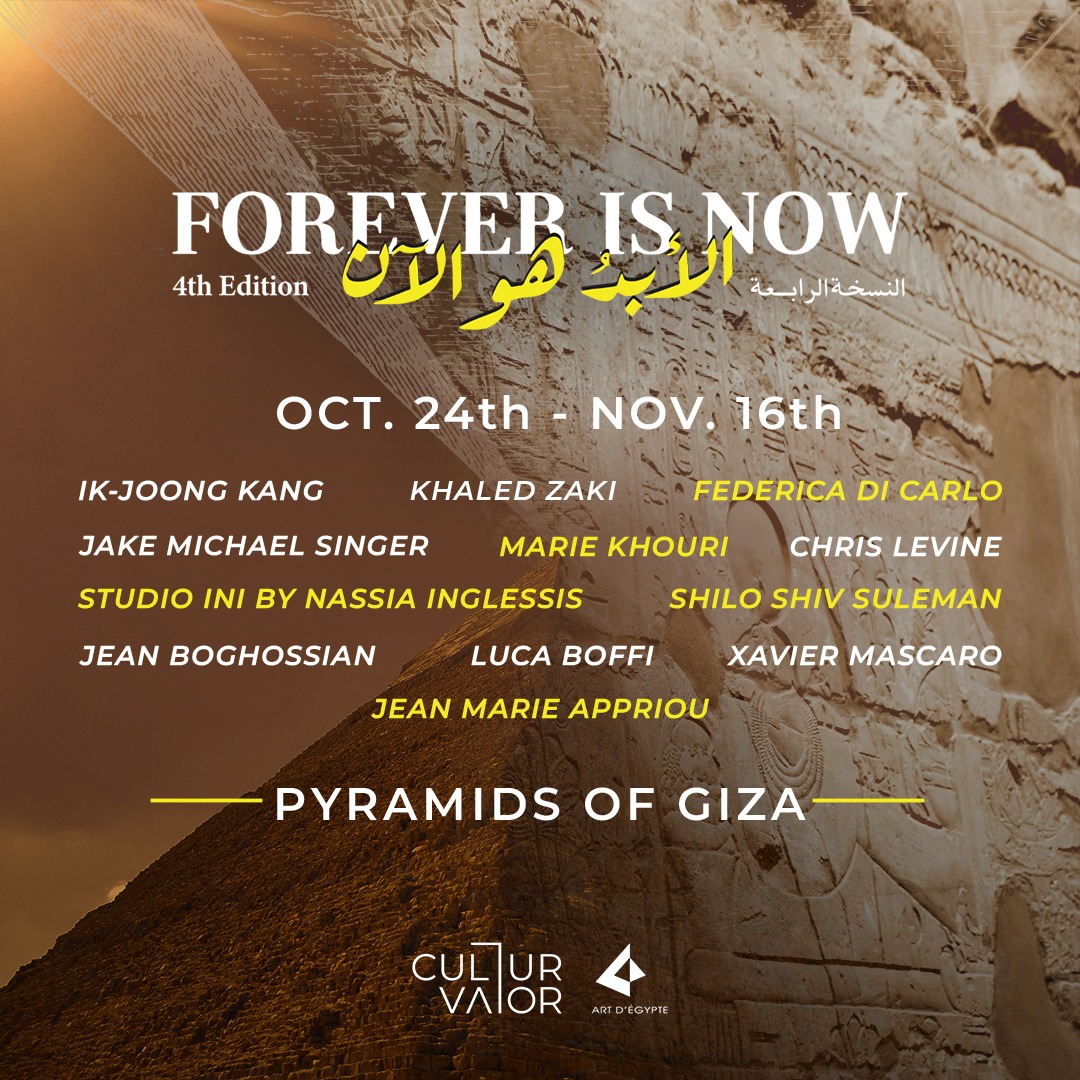 تعود النسخة الرابعة من معرض “الابد هو الان”، المعرض الفني البارز في مصر، هذا أكتوبر تحت رعاية وزارة الثقافة ووزارة السياحة والآثار ووزارة الخارجية المصرية و هيئة تنشيط السياحة وتحت من المقرر أن يقام المعرض في الفترة من ٢٤ أكتوبر إلى ١٦ نوفمبر ٢٠٢٤، حيث يجمع “الابد هو الان ” مجموعة متميزة من ١٢ فنانًا دوليًا، يساهم كل منهم بصوته الفريد في حوار جماعي يتجاوز الزمن والحدود الثقافية.