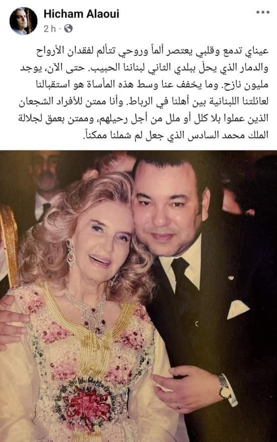 وقال الأمير بالحرف وبكلمات مؤثرة : ” عيناي تدمع وقلبي يعتصر ألماً وروحي تتألم لفقدان الأرواح والدمار الذي يحلّ ببلدي الثاني لبناننا الحبيب. حتى الآن، يوجد مليون نازح. وما يخفف عنا وسط هذه المأساة هو استقبالنا لعائلتنا اللبنانية بين أهلنا في الرباط. وأنا ممتن للأفراد الشجعان الذين عملوا بلا كلل أو ملل من أجل رحيلهم، وممتن بعمق لجلالة الملك محمد السادس الذي جعل لم شملنا ممكناً”.