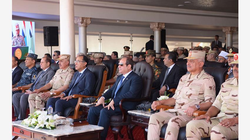 السيد الرئيس عبد الفتاح السيسي رئيس الجمهورية القائد الأعلى للقوات المسلحة يشهد اصطفاف تفتيش حرب الفرقة السادسة المدرعة بقيادة الجيش الثاني الميداني.