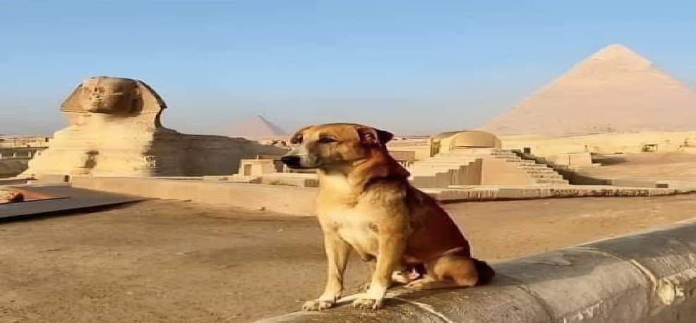 أحد هواة الطيران الشراعي كان يحلق صباحا في سماء الجيزة وبالضبط فوق الاهرامات إذا به يفاجئ بوجود كلب على سطح أحد اكبر الاهرامات والتي تعتبر إحدى عجائب الدنيا السبع .