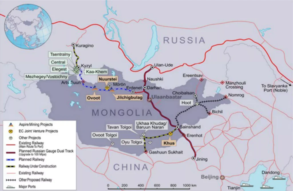 مبادرة طريق السهوب في منغوليا ، التي تم تصورها في عام 2014، طريقًا سريعًا عابرًا للحدود الوطنية بطول 997 كيلومترًا يربط بين روسيا والصين. كما تفترض المبادرة توسعة خط السكة الحديدية العابر لمنغوليا الحالي من سوخباتار في الشمال إلى زامين-أوود.في أكتوبر/تشرين الأول الماضي ، أصدر الرئيس الروسي فلاديمير بوتن تعليماته للحكومة بإعداد مقترحات بشأن