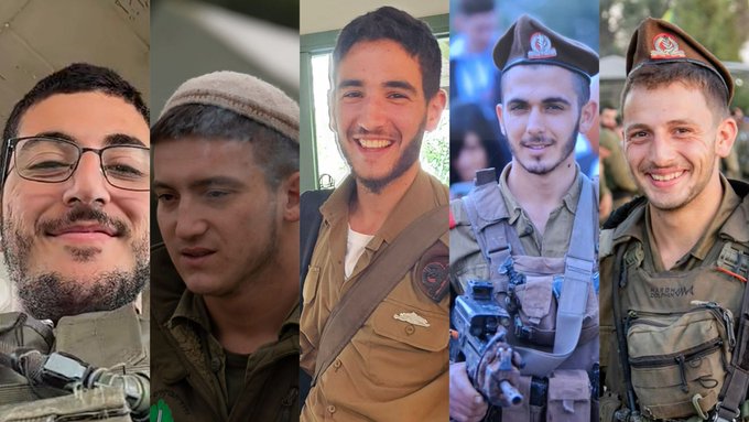وأكدت القناة على موقعها الإلكتروني أن الضابط وهو رقيب اسمه إيتي ماركوفيتش، ويبلغ من العمر 22 عاما، والرقيب شريا ألبويم (21 عاما) والرقيب درور حان (20 عاما) والرقيب نير غوفير (20 عاما) والرقيب يتسحاق سغرون (21 عاما) قد سقطوا في جنوب لبنان.