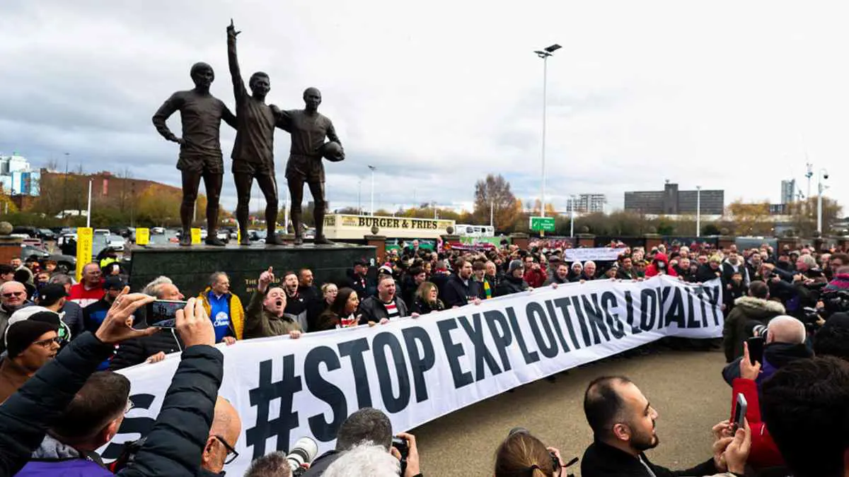 نظمت جماهير مانشستر يونايتد وقفة احتجاجية ضد إدارة ناديها برئاسة جيم راتكليف أمام ملعب “أولد ترافورد” بسبب أحدث الإجراءات الجديدة التي اتخذتها ورفع أسعار التذاكر.