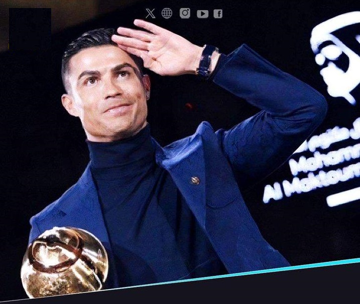 “تهانينا لكريستيانو رونالدو على فوزه بجائزة غلوب سوكر لعام 2023 لأفضل لاعب في الشرق الأوسط”. وتوج كريستيانو رونالدو بـ3 جوائز في حفل غلوب سوكر، فقد حصل على جائزة أفضل لاعب في الشرق الأوسط، وأفضل هداف في عام 2023، أما الجائزة الثالثة فهي أفضل لاعب حسب تصويت الجمهور.