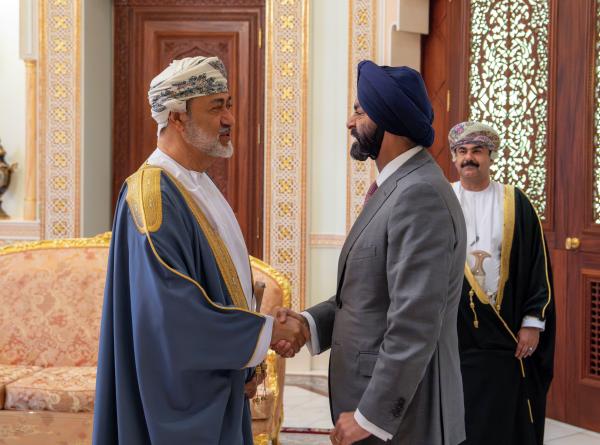استقبل السلطان هيثم بن طارق سلطان عُمان، رئيس مجموعة البنك الدولي “أجاي بانجا” بقصر البركة العامر صباح اليوم، /الأربعاء/جرى خلال المقابلة مناقشةُ عدد من الموضوعات الاقتصاديّة والتنمويّة، وبحثُ مختلف جوانب التّعاون بين الجهات المعنيّة في سلطنة عُمان ومجموعة البنك الدولي وسبل توسيع آفاق الشراكة.