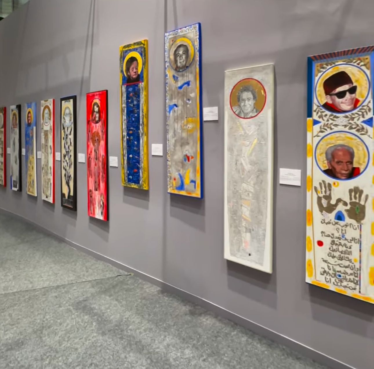 عرضت لوحاته التي تحمل اسم “نواويس مصرية”، والتي رسمها تخليدا وتكريما لأعلام الفن المصري في مختلف فروعه، والتي تم تنفيذها ضمن برنامج إقامة فنية بالتعاون بين “فن القاهرة” وجاليري كاف.