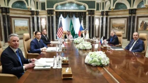 وعُقدت في العاصمة السعودية الرياض، يوم أمس الثلاثاء، محادثات روسية أمريكية رفيعة المستوى. وبحسب وزارة الخارجية الروسية، اتفق الطرفان على استئناف الاتصالات بشأن عدد من القضايا الدولية، مع الأخذ في الاعتبار مسؤولية روسيا الاتحادية والولايات المتحدة الأمريكية، كقوتين نوويتين. وأعرب الطرفان عن نيتهما النظر في مستقبل استئناف التعاون في الفضاء والطاقة ومجالات أخرى.