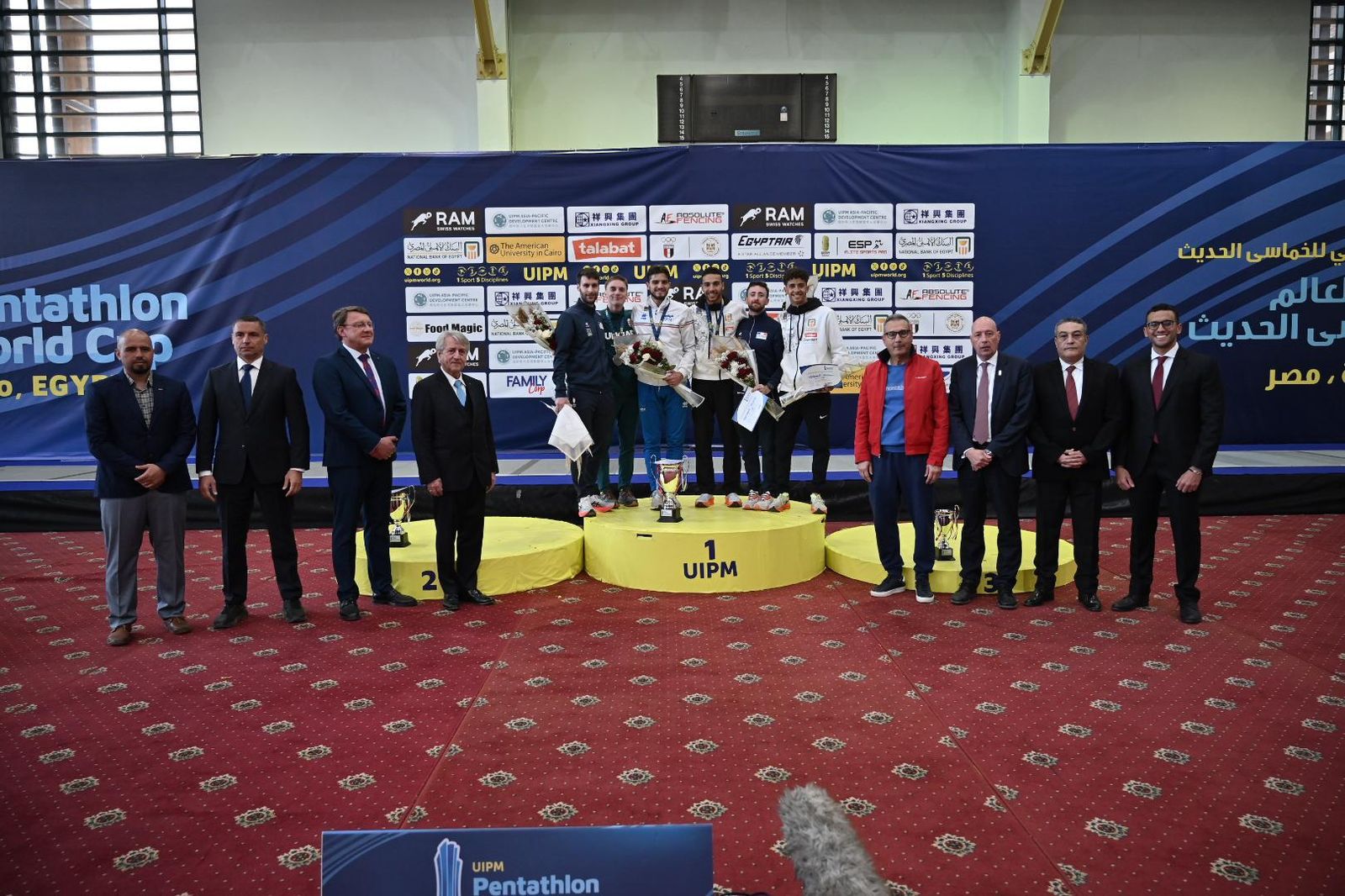 وقام بتسليم الميداليات المهندس شريف العريان رئيس الاتحاد المصري ونائب رئيس الاتحاد الدولي، والدكتور كلاوس شورمان الرئيس الشرفي للاتحاد الدولي والأستاذ محمد الإتربي رئيس مجلس إدارة البنك الأهلي المصري وفياشيسلاف ماليشيف نائب رئيس الاتحاد الدولي وحازم الدمهوجي نائب رئيس الاتحاد المصري وأندريا ديل أموري عضو الاتحاد الدولي وجاويد خاوار عضو الاتحاد الدولي والبطل الأولمبي المصري أحمد الجندي .