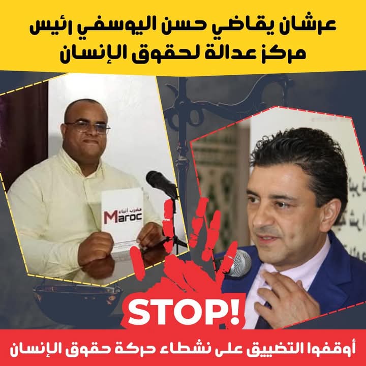تلق مركز عدالة لحقوق الإنسان بقلق كبير قرار تعيين أولى جلسات محاكمة الحقوقي حسن اليوسفي بالمحكمة الإبتدائية لتيفلت المزمع انعقادها بتاريخ : 04 يونيو المقبل، وذلك على خلفية الشكاية التي تقدم بها “عبد الصمد عرشان” الأمين العام لحزب الحركة الديمقراطية الاجتماعية و رئيس المجلس الجماعي لمدينة تيفلت.