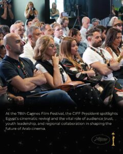 ضمن المشاركة الاستثنائية لمهرجان القاهرة السينمائي الدولي في فعاليات الدورة الـ78 لمهرجان كان السينمائي الدولي، شارك الفنان الكبير حسين فهمي، رئيس مهرجان القاهرة، اليوم في جلسة نقاشية بارزة بعنوان “مصر: دولة الأفلام الجماهيرية في العالم العربي”، والتي أقيمت على المسرح الرئيسي بقصر المهرجانات.