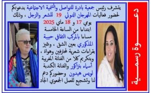تعيش مدينة الدار البيضاء إذن ابتداءا من الغد الموافق للسابع عشر من ماي ويوم الثامن عشر كذلك على إيقاع تظاهرة كبرى ، ويتعلق الأمر بالدورة التاسعة عشرة من المهرجان الدولي للشعر والزجل الذي تنظمه سنويا جمعية بادرة للتواصل والتنمية الاجتماعية احتفالا بذكرى ميلاد الأمير مولاي الحسن ولي عهد المملكة .