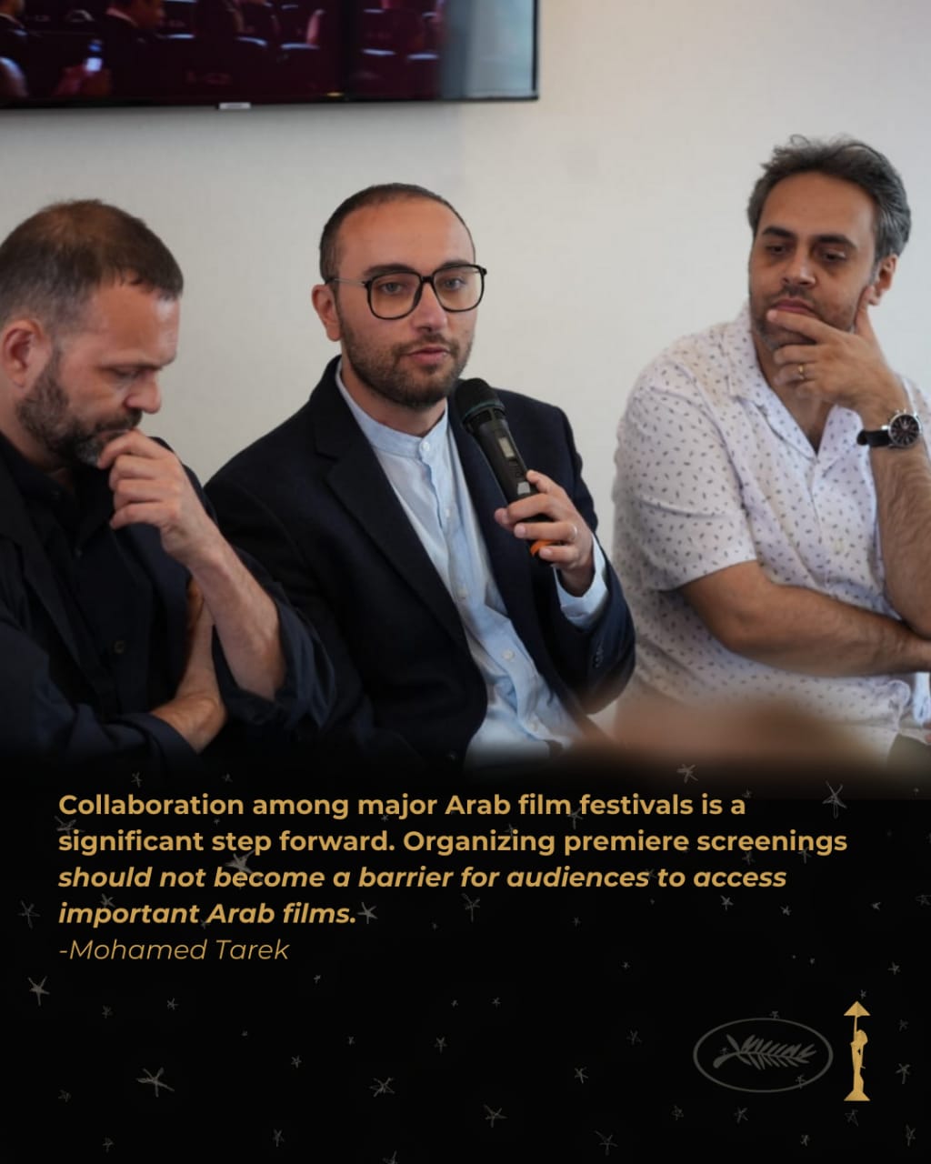 في إطار المشاركة الاستثنائية لمهرجان القاهرة السينمائي الدولي في فعاليات مهرجان كان السينمائي الدولي في دورته الثامنة والسبعين، شارك الناقد محمد طارق، المدير الفني لمهرجان القاهرة، في جلسة نقاشية بعنوان “بناء الروابط بين مهرجانات الأفلام العربية”. تناولت هذه الجلسة أهمية التعاون بين المهرجانات العربية لدعم صناع الأفلام المحليين والإقليميين، مع التركيز على بناء شبكة قوية من المهرجانات التي تعمل معًا لتعزيز صناعة السينما في المنطقة.