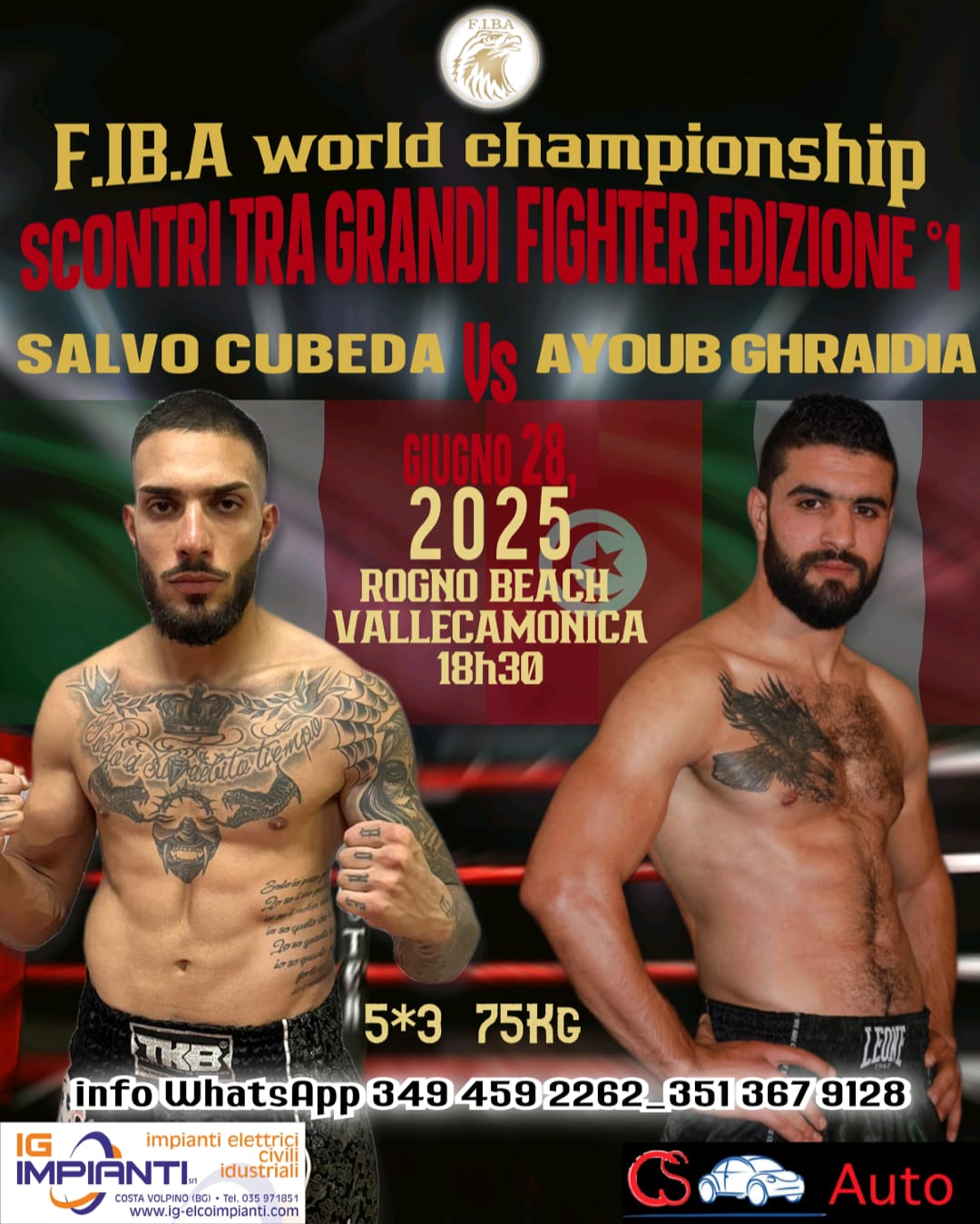 وسيشارك في منافسات البطوله بطل العالم العالمي أيوب غرايدية وسيُدافع البطل عن لقبه العالمي للمرة الرابعة على التوالي، حيث سيواجه البطل الإيطالي المعروف مالفاكو كابيدا في وزن فوق المتوسط (76 كلغ). ويُتوقع أن يكون النزال صعبًا ومثيرًا، إذ سيواجه البطل العربي أحد أقوى المنافسين في أوروبا والعالم.