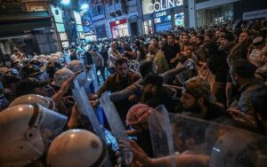 واندلعت الصدامات بعد أن أمر المدّعي العام في إسطنبول باعتقال محرّرين في مجلة ليمان التركية الساخرة لنشرهم رسما كاريكاتوريا “يُسيء صراحة إلى القيم الدينية”، في اتهام نفته المجلة.