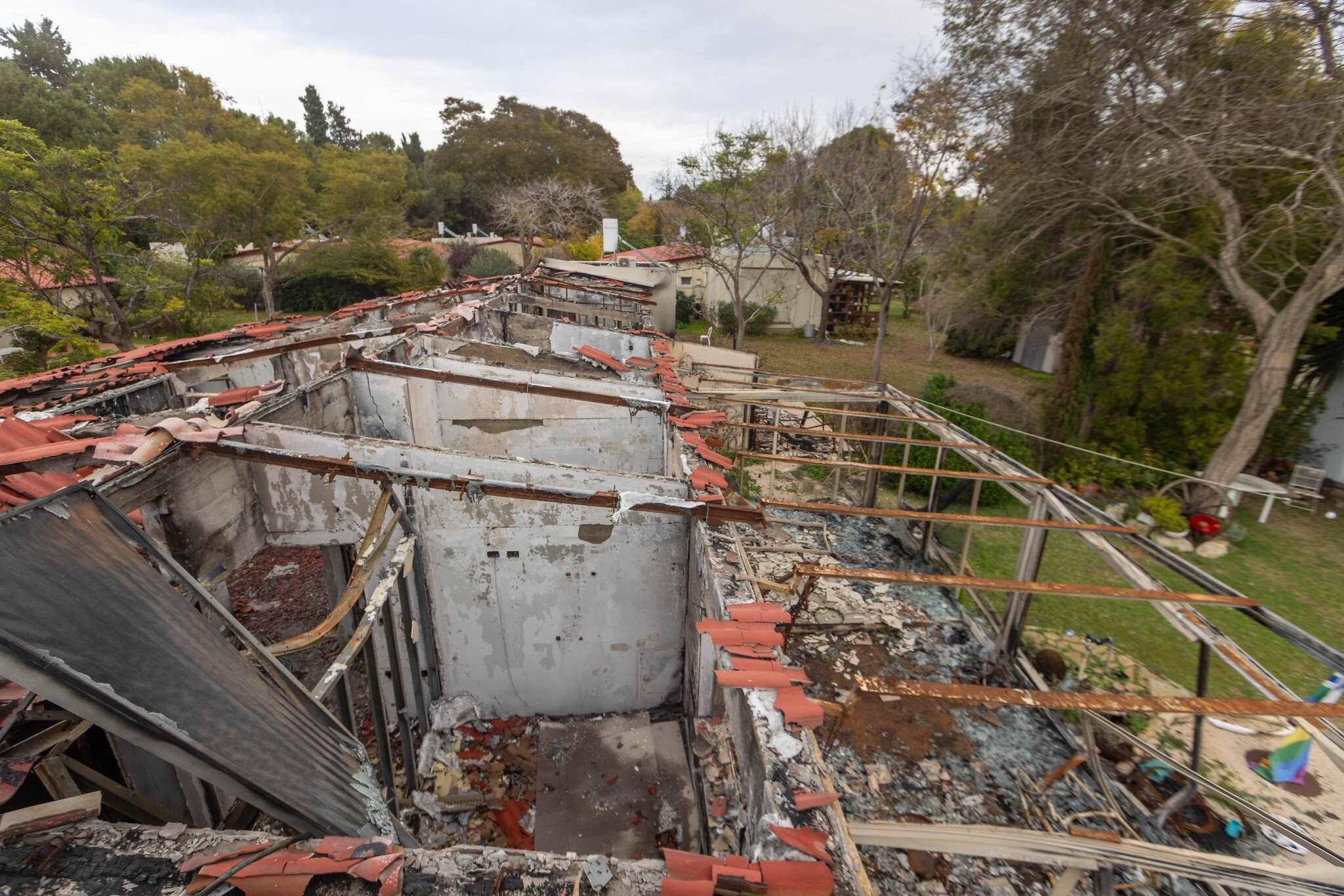 الدمار الذي تسبب فيه مسلحو حماس في كيبوتس نيريم في 7 أكتوبر 2023، بالقرب من الحدود بين إسرائيل وغزة، جنوب إسرائيل،)