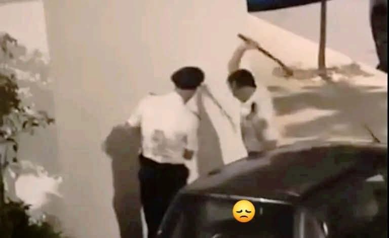ويظهر الفيديو شرطيان يعنفان مواطنا مرميا على الارض واحدهما يستعمل عصى ، يرفعها للاعلى ثم يضرب بقوة المواطن الذي لا حول له ولا قوة .