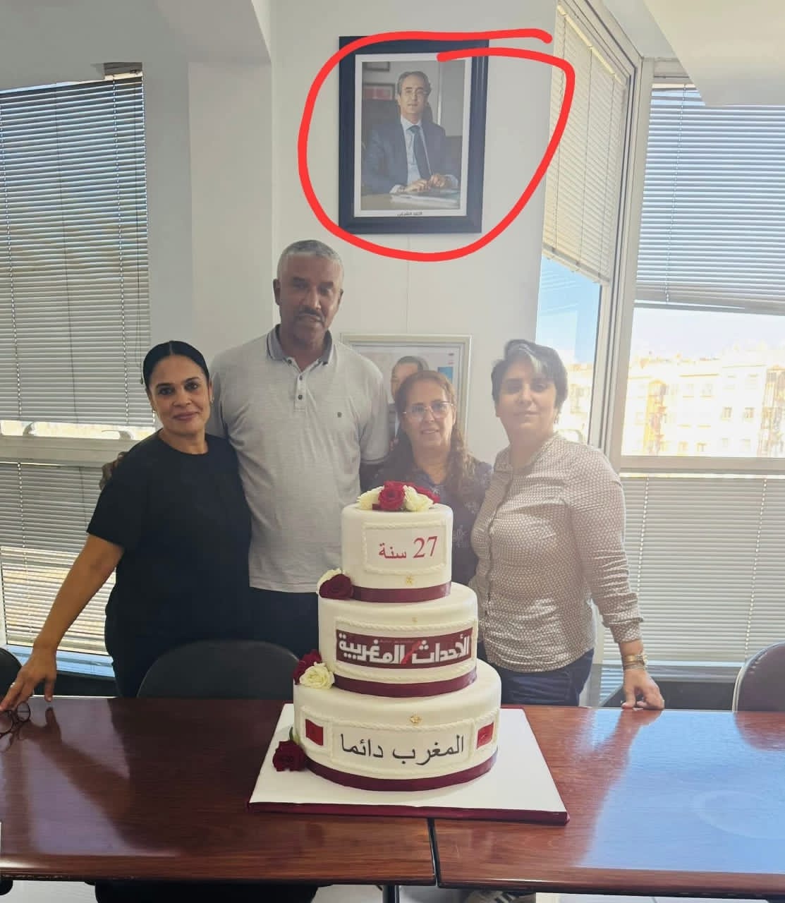 فخلال مناسبة احتفالها بالذكرى السابعة والعشرين لتأسيسها ، ظهر من خلال صور الاحتفال أن صورة ملك البلاد موضوعة أسفل صورة مالك هذه الجريدة .
