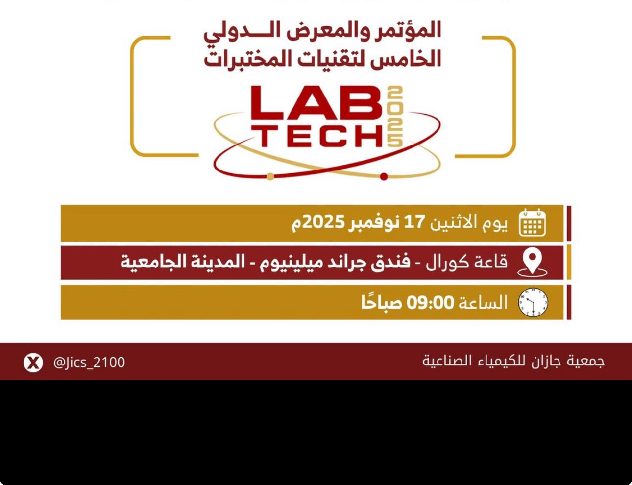 تنطلق يوم الاثنين المقبل فعاليات المؤتمر والمعرض الدولي الخامس لتقنيات المختبرات (LabTech 2025)، الذي تنظمه جمعية جازان للكيمياء الصناعية بالشراكة الاستراتيجية مع جامعة جازان، وذلك في فندق جراند ميلينيوم جازان.