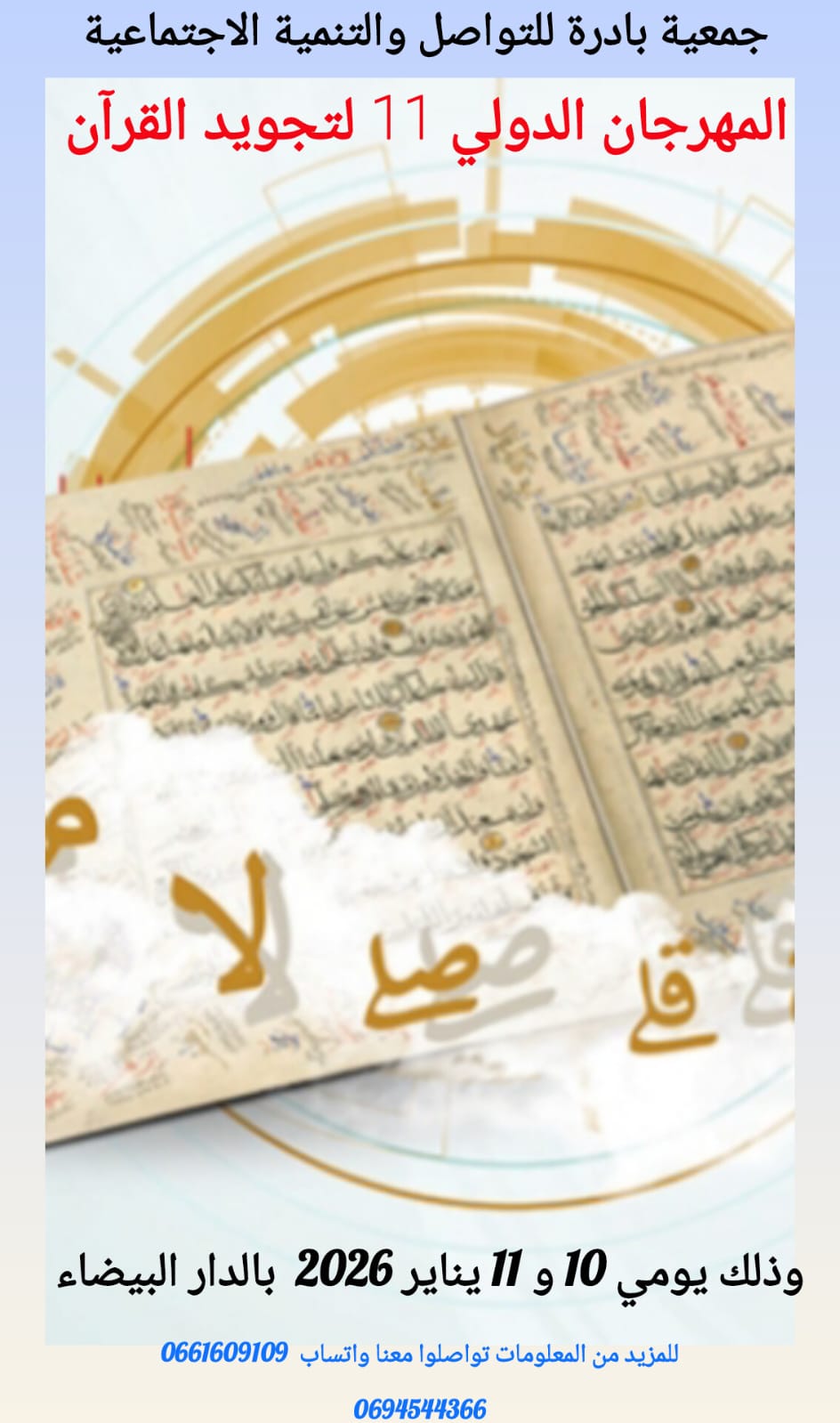 تستعد مدينة الدار البيضاء الكبرى لاحتضان دورة جديدة من فعاليات المهرجان الدولي لتحويد القران الكريم و الذي تنظمه جمعية بادرة للتواصل والتنمية الاجتماعية احتفالا بذكرى تقديم وثيقة المطالبة بالاستقلال .