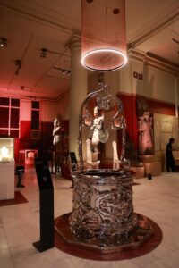 ● شارلوت كولبير فنانة متعددة الوسائط والمخرجة السينمائية الحائزة على جوائز تقدمر عملها «النزعات الخارقة – Supernatural Tendencies»، الذي يعيد تقديم البئر التقليدي للأمنيات برؤية معاصرة. مصبوب من المعدن ليعكس محيطه والمشاهد، يستلهم العمل دوره في الأساطير والحكايات الشعبية كمكان للنوايا الصامتة والإمكانيات المتخيلة، ما يخلق مساحة للتأمل الذاتي وإعادة التخيل من منظور جديد، وقالت كولبرت: “إنه لشرف لي أن أشارك في معرض الفن الزخرفي ضمن مؤسسة عريقة مثل المتحف المصري. عملي ‘Supernatural Tendencies’ هو بئر أمنيات يرتبط بالأنماط الأصلية لمصر القديمة، داعيًا إلى إعادة استكشاف لغة مألوفة من طفولتنا”.