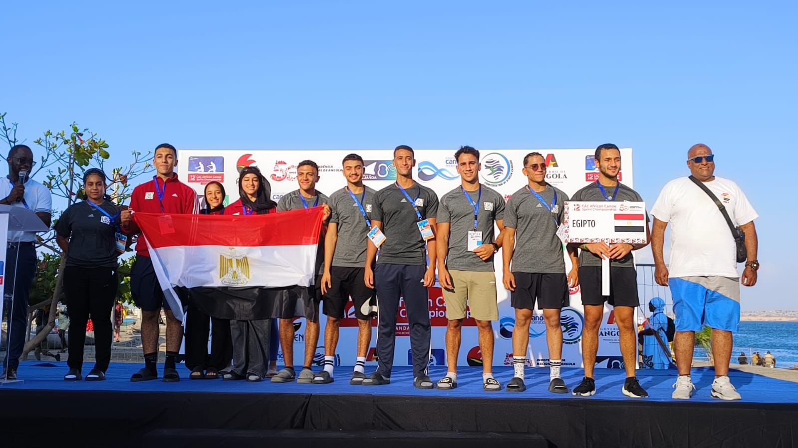 و يرافق البعثه اللواء احمد كامل رئيس الإتحاد لدعم الفريق اثناء البطوله وخوض انتخابات الاتحاد الأفريقي للكانوي والكياك علي منصب نائب الرئيس و التي تبدء عقب البطوله مباشرة .