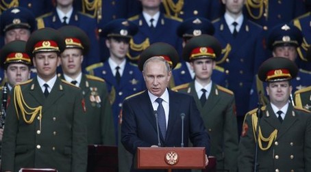 وقال الرئيس الروسي: “دخول الأسلحة الحديثة إلى الخدمة سيتم بنسبة 70% بحلول 2020″، مضيفاً “وفي بعض الحالات بنسبة 100%”، في إشارة إلى برنامج طموح لإعادة التسليح الروسي الذي يعطي أولوية للغواصات النووية والطائرات الاستراتيجية والصواريخ عابرة القارات.