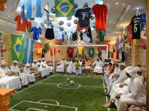 على طريقته الخاصة..احتفل الإماراتى يوسف محمد البريكي والمعروف بعشقه للساحرة المستديرة، بكأس العالم 2014 والمقام حالياً بمدينة ساوباولو البرازيلية، بإنشاء ملعب كرة قدم داخل منزله بمنطقة بنى ياس بمدينة أبوظبى، حسبما ذكر موقع قناة «فرانس14».