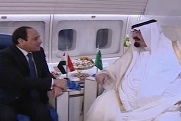 استقبل الرئيس عبد الفتاح السيسي، مساء الجمعة بمطار القاهرة، جلالة الملك عبد الله بن عبد العزيز آل سعود، خادم الحرمين الشريفين، ملك المملكة العربية السعودية، هذا، وقد عقدت جلسة مباحثات ثنائية شارك فيها من الجانب المصري المهندس إبراهيم محلب، رئيس مجلس الوزراء،و الفريق أول صدقي صبحي، وزير الدفاع والإنتاج الحربي القائد العام للقوات المسلحة، وهاني قدري،وزير المالية، و سامح شكري، وزير الخارجية. ومن الجانب السعودي كلٌ من سمو الامير سعود الفيصل، وزير الخارجية، والدكتور إبراهيم بن عبد العزيز العساف، وزير المالية، وعدد من كبار المسئولين السعوديين، والسفير أحمد قطان، سفير المملكة العربية السعودية في مصر.