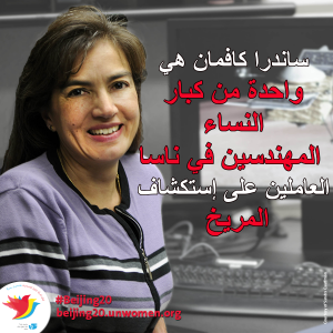 ساندرا كوفمان: مسئولة كبيرة في مؤسسة «ناسا» العالمية، نشأت في كوستا ريكا في منزل بلا سقف يحميه و هي الآن في واحد من أهم المناصب في العالم و في مجال الفضاء فهي تعمل علي دراسة سطح كوكب المريخ و ترأس المهمات الحساسة هناك، وهى أم وقائدة في مجال علوم الفضاء و عضوة في هيئة الأمم المتحدة للمرأة.