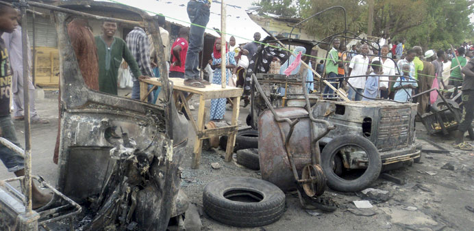 The blast from the vehicle bomb wrecked cars and taxis that were unloading passengers and wares on a road adjoining the market in the Borno state capital of Maiduguri.